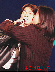 女歌迷擁吻獲華語歌曲排行第一的劉德華 2000年1月29日 08:11 ![]() 華語榜中榜九九最佳歌曲、歌手評選暨頒獎典禮二十七日晚在北京隆重舉行,來自香港、臺灣和內(nèi)地的幾十名著名歌手匯聚京城。香港著名歌星劉德華演唱的《愛你一萬年》獲排行第一,并獲得跨世紀(jì)男歌手獎。圖為在演出現(xiàn)場一名女歌迷沖上臺擁吻正在演唱的劉德華。作者:錢興強 |