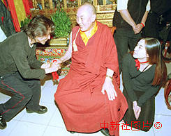 齊秦、王祖賢拜望西藏那倉活佛(圖文) 2000年4月14日 09:18 ![]() 臺(tái)灣著名歌星齊秦(左)和王祖賢(右)十二日晚在北京拜望中國藏語系高級(jí)佛學(xué)院副院長那倉·向巴昂活佛。齊秦表示,他和王祖賢將在今年晚些時(shí)間在西藏拉薩舉行藏族式的婚禮。中新社記者 吳新華 攝