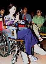 圖:吳小莉帶腳傷參加大學生申奧會 2001年6月4日 13:25 ![]() 小莉帶腳傷參加大學生申奧會。魏孝明 攝