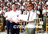圖:珠海慰問駐澳部隊官兵 2001年07月27日 20:39 ![]() 七月二十七日,珠海市委市政府慰問團到駐澳門部隊珠海基地慰問,珠海市副市長郭開華(左)代表珠海市向駐澳門部隊珠;刭浰臀繂柦稹V行律鐖D 石頭 攝