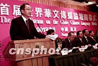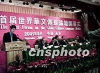 組圖:首屆世界華文傳媒論壇在南京開幕 2001年09月16日 14:42 ![]() 首屆世界華文傳媒論壇十六日在南京開幕,中國國務院僑務辦公室副主任兼中國新聞社社長劉澤彭主持會議。中新社記者 王瑤 攝 ![]() 首屆世界華文傳媒論壇十六日在南京開幕,中國新聞社總編輯郭招金在開幕式上作《全球化浪潮中的海外傳媒的定位與角色》的發(fā)言。中新社記者 王瑤 攝