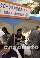 圖:日本力圖喚起人們對國產(chǎn)牛肉的信心 2001年11月19日 15:11 ![]() 日本人一向嗜食牛肉,雖然瘋牛病問題鬧得人心惶惶,但東京“食肉市場節(jié)”上免費品嘗仍吸引了不少牛肉美食家。圖為人們在爭著品嘗受精卵克隆牛肉。中新社記者 陶光雄 攝 |