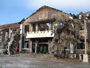 圖文:呼和浩特賓館大火 副市長等五人被燒死 2001年12月20日 10:10 ![]() 圖為火災后的呼和浩特賓館現(xiàn)場 中央電臺圖片 ![]() 消防車輛現(xiàn)場救火 新華網(wǎng)圖 中新網(wǎng)呼和浩特12月20日消息:19日晚23時30分左右,內蒙古自治區(qū)政府呼和浩特賓館發(fā)生一起重大火災。 據(jù)新華社報道,在火災中,呼和浩特市委常委、副市長林選才,北京瑪拉沁飯店副經(jīng)理史子義,呼和浩特市接待辦副主任王安明3人不幸燒死,另有17人燒傷,2人失蹤。 呼市消防支隊政委張學榮介紹,火災由賓館北樓一樓舞廳燒起,現(xiàn)總共二層的北樓已全部坍塌。 事故發(fā)生后,內蒙古自治區(qū)副主席王鳳歧即趕赴現(xiàn)場指揮救火工作,出動了180多人的消防隊伍。今日凌晨4時左右大火基本撲滅。 事故原因正在進一步調查之中。(王占義吳獻) 呼和浩特火災最新消息:3人燒死還有2人失蹤 中新網(wǎng)呼和浩特12月20日消息:19日晚23時30分左右,內蒙古自治區(qū)政府呼和浩特賓館發(fā)生一起重大火災,新華社最新的消息說,除呼和浩特市委常委、副市長林選才,北京瑪拉沁飯店副經(jīng)理史子義,呼和浩特市接待辦副主任王安明3人被燒死外,另有17人燒傷,2人失蹤。 呼和浩特賓館北樓始建于1953年,次年投入使用。這座俄式建筑為兩層磚木結構,是集餐飲、住宿、娛樂為一體的綜合性公共場所。樓的東西跨度為140米,南北寬60米,建筑面積6000平方米,其中過火面積3000平方米。一樓有客房28間,二樓有35間,一樓的東北角為600平方米的皇都歌舞廳,大火就是由這里燒起的。 事故發(fā)生后,內蒙古自治區(qū)副主席王鳳岐即趕赴現(xiàn)場指揮救火工作,出動了180多人的消防隊伍。今日凌晨4時左右大火基本撲滅。 殘垣斷壁景象凄慘呼和浩特賓館火災現(xiàn)場目擊 中新網(wǎng)北京12月20日消息:呼和浩特賓館12月19日午夜時分發(fā)生的重大火災,造成3人死亡17人燒傷,另外尚有幾人下落不明。20日凌晨,新華社記者聞訊趕往火災現(xiàn)場。記者現(xiàn)場看到,殘垣斷壁景象凄慘。 呼和浩特賓館地處市中心地帶的迎賓北路西側。昨天一日一夜大雪過后,通往賓館幾百米的路上成了冰河。記者只好沿路邊踏深雪前行。迎賓路口有警察把守,車輛禁止進入。還沒進入賓館大院,遠遠地就聽見消防車刺耳的聲音。在賓館大門口,映入眼簾的是地上飄零的彩帶、彩旗、紅燈籠。這些迎接圣誕、元旦節(jié)日的喜慶標志在此刻顯得異常刺眼。一看就知道這兒剛剛發(fā)生過災難。 兩位眼角流淚的婦女互相攙扶著向大門口走來,記者詢問得知他們是賓館的工作人員。其中的一位抹著眼睛簡短地告訴記者,火災大約是在1 9日晚11點20分從舞廳燒起的。 院子里停滿了消防車輛。賓館北樓大半個已成一個空架,樓頂被大火燒塌,樓的廢墟里冒出陣陣濃煙。這是一座建于20世紀50年代的兩層磚木結構俄式建筑,記者昨天上午剛在這座樓的二樓會議室開過自治區(qū)整頓市場秩序的一個會議,誰也不會想到現(xiàn)在這里全成了廢墟。 呼市消防支隊政委張學榮站在廢墟前告訴記者,接到報警后,消防部門共出動了36輛消防車、258人的撲火隊伍,到凌晨4時30分已將大火基本撲滅。他說樓的后面有兩個氟立昂儲罐,要是大火蔓延過去后果不堪設想。 在記者與張政委交談時,過來幾位客人說,他們的一位朋友下落不明。其中的一位告訴記者,他們來自烏蘭察布盟的集寧市,是來自治區(qū)開經(jīng)濟工作會的。他們的同伴集寧市計委主任就住在北樓二樓。昨天晚上,當住在西樓的他們幾個聞知北樓著火時,便立即跑過去救人。他們找來一個梯子,攀上去砸開同伴住的房間的窗戶,不料里面竄出濃煙,他們只好迅速撤離,同伴的下落至今不明,他們臉上布滿焦急的神情,請求消防隊員再到里面找一找。 記者看幾名消防隊員走進樓內尋人,忙緊跟而入,但進入門口時被張政委大聲叫。骸澳悴灰^去,這大樓都燒酥了,我們都不敢進去。”記者只好退回。過了一會,尋人的消防隊員走出來無奈地說:“一樓還能看清楚,但二樓里面全是灰燼,啥也看不出來! 上午7時許,內蒙古自治區(qū)主席烏云其木格、區(qū)委副書記楊利民、秘書長任亞平、呼和浩特市委書記楊晶、自治區(qū)副主席王鳳岐、牛玉儒等先后趕往火災現(xiàn)場,并迅速成立了以王鳳岐為組長的火災事故調查小組;馂牡脑蛘谡{查之中。(吳獻錢詠虹)(完) 呼和浩特火災現(xiàn)場又發(fā)現(xiàn)2死者死亡人數(shù)增至5名 中新網(wǎng)呼和浩特12月20日消息:呼和浩特賓館火災現(xiàn)場又清理出2名遇難死者。到今天下午3點,火災死亡人數(shù)增加至5人。 新華社記者在火災現(xiàn)場看到,內蒙古自治區(qū)和呼市兩級公安、消防和有關部門的救助人員正在清理火災過后現(xiàn)場的各類物品,包括逃生者遺留在在房間里的物品。(吳獻錢 詠虹) |