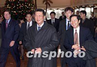 圖文:澳門(mén)特區(qū)行政長(zhǎng)官何厚鏵抵達(dá)北京述職 2001年12月25日 17:36 ![]() 前來(lái)述職的澳門(mén)特別行政區(qū)行政長(zhǎng)官何厚鏵,二十五日抵達(dá)北京并下榻港澳中心。國(guó)務(wù)院港澳辦公室副主任陳佐洱在港澳中心大堂迎接。中新社記者 毛建軍 攝 ![]() 前來(lái)述職的澳門(mén)特別行政區(qū)行政長(zhǎng)官何厚鏵,二十五日抵達(dá)北京并下榻港澳中心,國(guó)務(wù)院港澳辦公室副主任陳佐洱在港澳中心大堂迎接。中新社記者 毛建軍 攝
