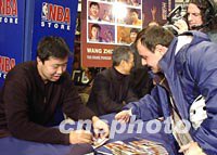 圖:中國(guó)球員王治郅為美國(guó)球迷簽字 2002年01月04日 17:23 ![]() 美國(guó)東部時(shí)間三日中午,美國(guó)職業(yè)籃球協(xié)會(huì)中唯一的中國(guó)球員王治郅出席了紐約市中心NBA專賣店里舉行的他個(gè)人肖像郵票首次公開(kāi)展示會(huì)。這套郵票由利比里亞政府發(fā)行,可在全球通用。會(huì)后,他為慕名前來(lái)的美國(guó)球迷簽字。中新社記者 陳建 攝 |