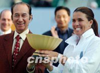 圖:“賭王”何鴻燊為卡佩雅蒂頒獎 2002年01月07日 15:00 ![]() 排名女子網(wǎng)球世界單打第二的美國名將卡佩雅蒂,1月5日在香港女網(wǎng)挑戰(zhàn)賽決賽中獲得冠軍,“賭王”何鴻燊為其頒獎。中新社傳真 任晨鳴 攝 |