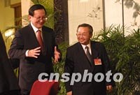 ![]() 中國(guó)外交部長(zhǎng)唐家璇與九屆全國(guó)人大五次會(huì)議新聞發(fā)言人曾建徽,六日走出人民大會(huì)堂記者招待會(huì)現(xiàn)場(chǎng)。唐家璇在會(huì)上說,中國(guó)入世有利于香港繼續(xù)維持包括國(guó)際金融中心在內(nèi)的三個(gè)國(guó)際中心地位。中新社記者 劉殊瑾 攝