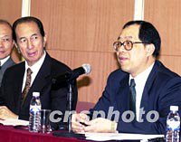 澳門特區(qū)政府與何鴻燊簽署18年博彩經(jīng)營(yíng)合約 2002年03月29日 06:18 ![]() 澳門特區(qū)政府與澳門博彩股份有限公司二十八日簽署博彩經(jīng)營(yíng)批給合同,圖為特區(qū)政府經(jīng)濟(jì)財(cái)政司司長(zhǎng)譚伯源與澳博公司董事長(zhǎng)何鴻燊在簽約儀式后共同舉行新聞發(fā)布會(huì)。中新社記者 宗金柱 攝