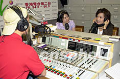 ![]() 歌星容祖兒7日在香港接受香港電臺(tái)“娛樂滿天星”訪問,“娛樂滿天星”兩位主持周國豐(背鏡者)、陳淑蘭問及祖兒最新動(dòng)態(tài)。中新社圖 鄧慶樂 攝