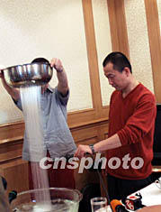 圖:譚盾演奏“多媒體音樂” 2002年05月17日 14:33 ![]() 剛剛獲得格萊美獎(jiǎng)的知名音樂家譚盾十七日現(xiàn)身滬上,并帶來了他獨(dú)特的“多媒體音樂”。圖為譚盾通過自己發(fā)明的半球形透明水盆,和外國音樂家一起演奏《永恒之水協(xié)奏曲》。孫璐 攝