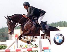 ![]() 2002年“寶馬杯”全國馬術(shù)障礙精英賽總決賽26日在北京格林馬會(huì)舉行,來自北京、上海、內(nèi)蒙古、新疆、廣東等40名運(yùn)動(dòng)員和50匹優(yōu)秀運(yùn)動(dòng)馬參加了比賽。廣東李振強(qiáng)、上海張濱、內(nèi)蒙古孟克獲得個(gè)人前三名。趙振清 攝