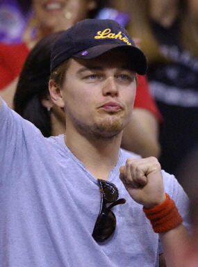 圖:萊昂納多關(guān)注NBA西區(qū)決賽 2002年05月27日 14:28 5月26日美國(guó)演員萊昂納多在NBA西區(qū)決賽上為洛杉磯湖人隊(duì)歡呼。湖人隊(duì)以100-99戰(zhàn)勝?lài)?guó)王,雙方總比分戰(zhàn)成2比2平。法新供中新