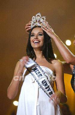 俄羅斯佳麗奪得環(huán)球小姐 中國卓靈榮獲第三(圖) 2002年05月30日 11:53 ![]() 俄羅斯佳麗贏得環(huán)球小姐桂冠 ![]() 中國佳麗卓靈贏得第三名,圖為中國小姐展示晚裝。 中新網(wǎng)北京5月30日消息:當(dāng)?shù)貢r間29日晚,在波多黎格舉行的環(huán)球小姐選美中,俄羅斯人奧克薩納·費多羅瓦以烏黑靚麗的長發(fā)和優(yōu)雅的風(fēng)度,擊敗另外74名佳麗,贏得環(huán)球小姐桂冠。 據(jù)法新社報道,奧克薩納·費多羅瓦身穿白色禮服,面帶微笑,步入舞臺,并向現(xiàn)場觀眾飛吻致意。 上屆環(huán)球小姐波多黎格人丹尼斯·吉諾內(nèi)斯將環(huán)球小姐桂冠交給費多羅瓦。 巴拿馬的烏斯汀·帕塞克獲得亞軍,中國佳麗卓靈贏得第三名。 相關(guān)報道:多圖:2002年環(huán)球小姐選美進(jìn)行晚裝展示 相關(guān)報道:組圖:2002世界小姐選美進(jìn)行泳裝展示 相關(guān)報道:多圖:2002世界小姐選美賽進(jìn)行服裝展示