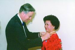 廣州籍旅法華僑黃國(guó)平女士獲“法國(guó)騎士勛章” 2002年06月12日 17:12 ![]() 《信息時(shí)報(bào)》供圖 中新網(wǎng)廣州6月12日消息:據(jù)《信息時(shí)報(bào)》報(bào)道,近日,一個(gè)特別的授勛儀式在廣州二沙島的一家會(huì)所舉行,法國(guó)駐華大使皮埃爾·毛磊專(zhuān)程從北京來(lái)到廣州,代表法國(guó)總統(tǒng)向一位廣州人——法國(guó)-廣東協(xié)會(huì)副會(huì)長(zhǎng)黃國(guó)平女士頒發(fā)了“法蘭西國(guó)家功勛騎士勛章”。 法國(guó)外交部長(zhǎng)于貝·韋德林在致黃女士的賀信中稱(chēng),法國(guó)總統(tǒng)頒發(fā)該獎(jiǎng)項(xiàng),是為了感謝黃女士“對(duì)法中文化和藝術(shù)交流領(lǐng)域做出的杰出貢獻(xiàn)”。 據(jù)了解,黃女士還是首個(gè)獲此榮譽(yù)的中國(guó)公民。昨日,記者對(duì)她進(jìn)行了獨(dú)家采訪。 黃女士祖籍廣東肇慶,出身于一個(gè)僑商家庭,從小在廣州長(zhǎng)大,20世紀(jì)60年代畢業(yè)于廣州執(zhí)信中學(xué),她的丈夫李萬(wàn)鈞以前在廣州中山大學(xué)外語(yǔ)系任教,可謂是地道的廣州人。1984年,黃女士跟隨丈夫移居法國(guó)。 移居后,經(jīng)過(guò)一段時(shí)間的艱苦奮斗,黃女士終于有了自己的事業(yè)。1995年,黃女士當(dāng)選成為法國(guó)廣(東)肇(慶)同鄉(xiāng)會(huì)的副會(huì)長(zhǎng),開(kāi)始積極組織中法文化交流。 貼錢(qián)開(kāi)辦漢語(yǔ)講座 黃女士最難忘的就是她第一次組織的中法文化交流活動(dòng)——漢語(yǔ)講座。1996年,她專(zhuān)門(mén)聘請(qǐng)廣州外國(guó)語(yǔ)學(xué)院漢學(xué)教授朱匡侯去法國(guó)開(kāi)中文講座,但想不到一開(kāi)始就遇到了很大阻力。 以前,法國(guó)的大部分華僑、華人多年來(lái)更熱衷于求神拜佛與旅游,對(duì)文化活動(dòng)不很關(guān)心。要開(kāi)漢語(yǔ)講座的消息傳出后,同鄉(xiāng)會(huì)中的不少人都對(duì)此不理解。但是黃女士看到,中國(guó)的電影《黃土地》和《紅高梁》等在法國(guó)放映后,法國(guó)人就認(rèn)為,中國(guó)就是那樣貧窮落后,這令黃女士覺(jué)得很不舒服,她決心要把中國(guó)的文化介紹到法國(guó)去,讓法國(guó)主流社會(huì)對(duì)中國(guó)有越來(lái)越多的了解。最后,她還是決定自己出錢(qián)出力辦這件事。 黃女士為每一個(gè)參加講座的孩子都準(zhǔn)備了禮物,并親自包好。中文學(xué)得好的孩子,還可以得到500法郎的獎(jiǎng)金。另外,她還邀請(qǐng)中國(guó)駐法國(guó)的大使夫人、教育參贊出席這次講座。結(jié)果講座的那天雖然下著大雪,但座無(wú)虛席,還需要加位。法國(guó)華僑的孩子們齊聲朗誦唐詩(shī),講座獲得很好的效果。 令粵劇迷住法國(guó)人 此后,黃女士更加專(zhuān)注于中法之間的文化交流活動(dòng)。她創(chuàng)立了法國(guó)-廣東協(xié)會(huì),丈夫任會(huì)長(zhǎng),自己任常務(wù)副會(huì)長(zhǎng)。上世紀(jì)90年代,黃女士回到廣州后,對(duì)粵劇產(chǎn)生了濃厚的興趣,開(kāi)始專(zhuān)心致志地學(xué)唱粵劇,并被行家發(fā)現(xiàn)其嗓音極具潛質(zhì),被人稱(chēng)為“巴黎紅線(xiàn)女”,因?yàn)樗纳ひ襞c紅線(xiàn)女很相似,唱到高音部分仍能迂回婉轉(zhuǎn)。 今年3月,在黃女士的協(xié)助下,廣州市文化局和廣州服裝協(xié)會(huì)的代表團(tuán)在巴黎舉辦了文藝節(jié)目和時(shí)裝表演的專(zhuān)場(chǎng)演出。廣州的粵劇名家在法國(guó)上千名各界代表面前,開(kāi)腔獻(xiàn)唱,使自詡身處世界文化藝術(shù)中心的巴黎人為之傾倒。 隨著廣州向國(guó)際化大城市發(fā)展,建立廣州歌劇院被提到了議事日程。黃女士幫助廣州的代表團(tuán)到巴黎歌劇院進(jìn)行考察,她還提供自己的別墅供廣州的代表團(tuán)使用。后來(lái),多家法國(guó)設(shè)計(jì)公司積極為廣州歌劇院提供設(shè)計(jì)方案,并與廣州結(jié)緣。在廣州新體育館初建時(shí),就采用了法國(guó)設(shè)計(jì)大師安德魯?shù)姆桨浮?/p> 幫廣州雜技團(tuán)找鍋 前年圣誕節(jié)前夕,廣州雜技團(tuán)赴巴黎演出。演出期間,黃女士與正在巴黎訪問(wèn)的陳傳譽(yù)副市長(zhǎng)一道對(duì)廣州雜技團(tuán)進(jìn)行慰問(wèn)。在慰問(wèn)中,黃女士偶然發(fā)現(xiàn),由于雜技團(tuán)的駐地禁止明火煮食,雜技團(tuán)的工作人員只好用電平底鍋煮飯,但由于這種鍋不能炒菜,因而無(wú)法滿(mǎn)足雜技團(tuán)所有人員的胃口。連日來(lái),演員們?cè)谛量啾硌葜,只能生吃黃瓜、番茄等蔬菜。黃女士看到以后非常心疼。第二天,她就和丈夫驅(qū)車(chē)在巴黎找可以用來(lái)炒菜的電炒鍋。但電炒鍋在巴黎是十分罕見(jiàn)的商品,結(jié)果黃女士幾乎找遍整個(gè)巴黎后,才在一家經(jīng)營(yíng)中國(guó)廚具的小店買(mǎi)到。這令雜技團(tuán)的工作人員十分感動(dòng)。 沒(méi)想到,就在圣誕節(jié)的第二天,一場(chǎng)龍卷風(fēng)把雜技團(tuán)表演場(chǎng)地的帳篷、表演設(shè)備全部刮走,令演出無(wú)法進(jìn)行。黃女士馬上前往慰問(wèn),并多方聯(lián)系。最后,經(jīng)過(guò)演出商和黃女士的努力,雜技團(tuán)的表演得以繼續(xù)。黃女士還買(mǎi)了80多份圣誕禮物,讓中國(guó)駐法大使吳建民一一送到雜技團(tuán)成員的手中。 最后,廣州雜技團(tuán)