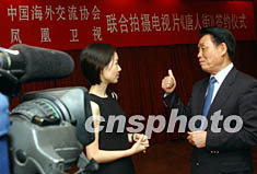 ![]() 中國海外交流協(xié)會(huì)和香港鳳凰衛(wèi)視二十一日在北京簽署聯(lián)合拍攝電視片《唐人街》的協(xié)議,中國海外交流協(xié)會(huì)常務(wù)副會(huì)長郭東坡(右)在簽約儀式上接受鳳凰衛(wèi)視主持人陳魯豫采訪時(shí)稱,該片必將在海外華僑、華人中間引起廣泛的影響和關(guān)注。作者:武仲林