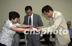 ![]() 花岡事件受難者聯(lián)誼會(huì)2日在日本國(guó)會(huì)發(fā)表《致日本內(nèi)閣函》,要求日本政府正視強(qiáng)擄、奴役中國(guó)戰(zhàn)俘勞工的歷史,承擔(dān)政治、法律、道義上的責(zé)任,公開(kāi)、正式地向中國(guó)人民謝罪。圖為受難者家屬代表王紅向日本國(guó)會(huì)議員提交函件。中新社記者 陶光雄 攝