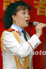 ![]() 由150人組成的中國人民解放軍軍樂團(tuán)強(qiáng)大陣容,7月6日晚將在香港紅磡體育館演出。7月4日下午,中國著名女高音歌唱家韓芝萍大校為來賓演唱演出晚會歌曲。任晨鳴 攝