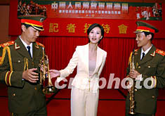 ![]() 香港亞視當(dāng)紅主持人朱慧珊,7月4日出席中國人民解放軍軍樂團(tuán)記者會,她將主持7月6日晚在香港紅磡體育館舉行的中國人民解放軍軍樂團(tuán)演出晚會。任晨鳴 攝
