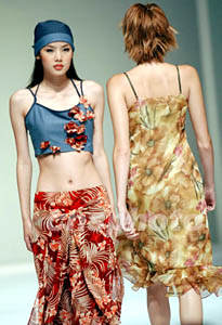 圖:香港時裝節(jié) 模特展示春夏新裝作品 2002年07月10日 09:42 ![]() 來自韓國的時裝設(shè)計師李炳周,7月9日在香港舉辦的“亞太時裝設(shè)計師表演”專場上展示韓國風(fēng)情系列。洪少葵 攝