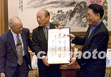 圖:郭東坡會(huì)見旅日華僑聯(lián)合總會(huì)代表團(tuán) 2002年07月24日 08:24 ![]() 國務(wù)院僑辦主任郭東坡二十三日在北京釣魚臺(tái)會(huì)見由殷秋雄(左一)、金(羽加軍)(左二)率領(lǐng)的旅日華僑聯(lián)合總會(huì)代表團(tuán)。該團(tuán)自1999年以來共捐款210萬元人民幣用于建立希望小學(xué)等項(xiàng)目。作者:鄭萍萍