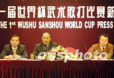 圖:首屆世界杯武術(shù)散打賽將于25日在上海開幕 2002年07月24日 18:53 ![]() 首屆世界杯武術(shù)散打賽將于二十五日在上海拉開戰(zhàn)幕。本次比賽吸引了來(lái)自中國(guó)、美國(guó)、巴西、韓國(guó)等十五個(gè)國(guó)家和地區(qū)的四十四名“武林高手”前來(lái)參賽。圖為國(guó)際武術(shù)聯(lián)合會(huì)秘書長(zhǎng)嚴(yán)建昌(中)二十四日在新聞發(fā)布會(huì)上介紹比賽情況。作者:湯彥俊