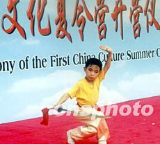 圖:天津霍元甲武術(shù)學(xué)校小朋友表演武術(shù) 2002年07月30日 14:47 ![]() 由中國(guó)對(duì)外文化交流協(xié)會(huì)主辦的首屆中國(guó)文化夏令營(yíng),七月二十九日在天津華夏未來(lái)少兒藝術(shù)中心開(kāi)營(yíng)。天津霍元甲武術(shù)學(xué)校的小朋友在開(kāi)營(yíng)儀式上表演武術(shù)。作者:孫志民