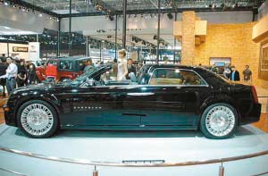 克萊斯勒300C Hollywood的軸距增大了45.7厘米,以充分利用封閉式乘客艙和敞開式駕駛艙?巳R斯勒300C Hollywood采用柔軟的橘黃色皮革裝飾,并具有嵌入式雞尾酒區(qū)和香檳酒杯槽?巳R斯勒300C Hollywood配備了兩個(gè)39.1厘米的大型LCD娛樂顯示屏以及Harman音響系統(tǒng)?巳R斯勒300C Hollywood采用了反開式車門,并裝配了Super Alloy的22英寸特制車輪。
