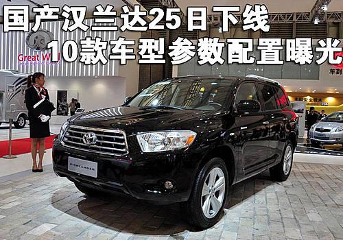 性能強悍,寬大舒適的大型SUV,一直是具有獨特品位喜歡運動且資金富裕消費者的最愛。廣汽豐田的首款SUV車型漢蘭達將于本月25日正式下線,并公布售價。目前北京地區(qū)的廣汽豐田各個4S店均開始了國產(chǎn)漢蘭達的預定工作,訂金1萬元,預計售價為27-41萬元。我們也在第一時間得到了國產(chǎn)漢蘭達的參數(shù)配置。下面就讓我們一起去提前了解一下國產(chǎn)漢蘭達車型。