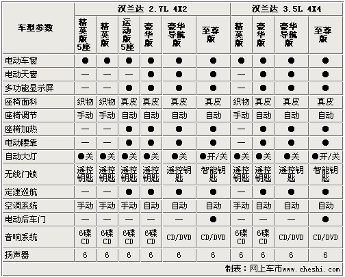 漢蘭達(dá)身為一款中高級(jí)SUV車型,所以在豪華配置上還是比較全面的,除了精英型車型外,其它車型的座椅都是真皮材質(zhì)的,而且還配備了座椅電動(dòng)調(diào)節(jié)、加熱和電動(dòng)腰靠,大大提升的漢蘭達(dá)的品質(zhì)。國(guó)產(chǎn)漢蘭達(dá)的全系車型都配備了6喇叭的音響系統(tǒng),高配車型配有DVD影音系統(tǒng)。頂配車型的尾門為電動(dòng)開啟和關(guān)閉,大大的方便乘客使用。