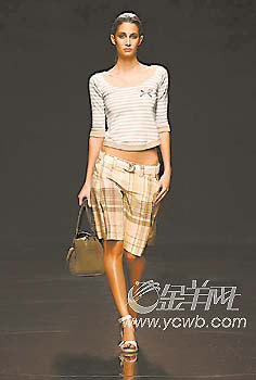 C.百慕大短褲紅色的格仔短褲甜美跳躍,不羈的沙灘中褲顯得粗獷,一些綢緞質(zhì)料的短褲則優(yōu)雅得很。今夏,短褲的流行指數(shù)遠(yuǎn)遠(yuǎn)超過了裙子,各種款式的短褲、中褲令人眼花繚亂,對想要嘗試男孩裝束的女性來說,選幾件,雖然是最簡單不過的短褲,不同的色彩和質(zhì)地卻能穿出不一樣的風(fēng)情。