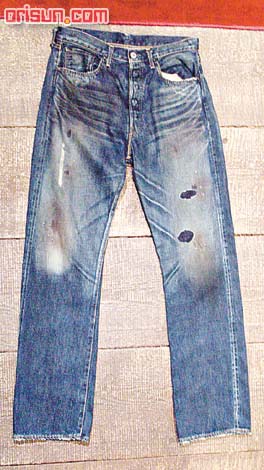 Levi'sVintageClothing44年501,仿效戰(zhàn)后時期設(shè)計,因當時物資短缺,所以褲袋沒有撞釘、后袋沒有車線及皮牌。