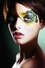 結(jié)合新甜美眼妝風(fēng)潮,創(chuàng)造了現(xiàn)代摩登的“普普”系列,以充滿礦物質(zhì)感的亮澤來打造浪漫、狂野,有如孔雀開屏的華麗,在金粉的光彩中,透露古典主義的彩妝風(fēng)格,冷艷中野性難馴。妝容特征在濃重的大煙熏、夸張的睫毛,以及深邃明顯的眼線,聚焦全在眼部,看起來難以捉摸,甚至還有難以親近的高傲感。