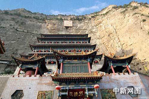 雄偉壯麗的大羅宮,兩側(cè)是神秘奇險的白云洞和白云庵。白云洞位于大羅宮北側(cè),百米崖壁上有一洞口,柴扉半啟,是資深高道閉關(guān)辟谷之所。這里,陰雨前常有白云飄出,故稱白云洞。清代乾隆年間介休名士王佑曾賦“深山多白云,洞在云深處,竟日寂無人,白云自來去”的詩句,道出了這一景觀的奇妙和獨特。白云庵深藏于百米懸崖上一天然石洞中,內(nèi)有釋迦牟尼和文殊、普賢塑像,為宋代風(fēng)格。塑像身后有6塊0.6平方米的石板,上面刻有《金剛經(jīng)》經(jīng)文,雖年深日久,但保存基本完好。在此原無徑可尋的懸崖絕壁之上造像、勒石,其難度之大可想而知。古人那種不畏艱險的執(zhí)著追求,不禁使人嘆服!現(xiàn)在已筑起了懸空通道,供游客觀賞此庵。