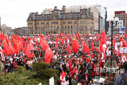 中新網(wǎng)渥太華4月13日電 4月13日下午,加拿大首都渥太華國會山廣場被鮮艷的中加兩國國旗和奧林匹克旗幟淹沒,近萬名來自加拿大各地的華人聚集在一起,舉行“宣傳西藏真相,維護(hù)祖國統(tǒng)一”大型集會活動。以下是渥太華《七天新聞》提供給本網(wǎng)的發(fā)自現(xiàn)場圖片報道。