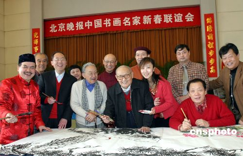 2006年2月2日,在大年初五這個迎賓納喜的好日子里,書畫家婁師白、阿老、袁熙坤、金鴻鈞、白伯驊、白啟哲、姚少華、雷公、婁述德、劉學(xué)思、姚坤、孫陽、郭玫宗等在北京晚報社會議室歡聚一堂,參加北京晚報中國書畫名家新春聯(lián)誼會。作者:廖攀