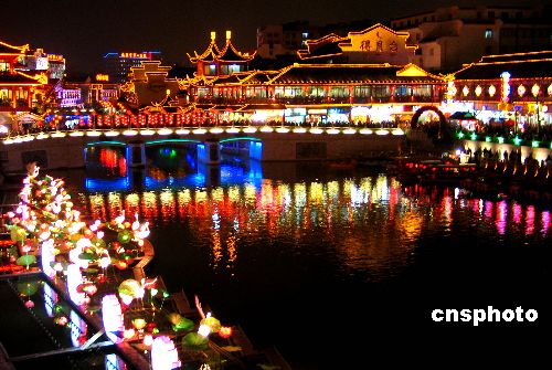 南京夫子廟宛如燈的海洋。新春佳節(jié)以來,以“魅力的秦淮燈彩,迷人的槳聲燈影”為主題的2006年中國南京夫子廟燈會,讓120余萬人次的南京市民及中外游客感受到“秦淮燈火甲天下”的美麗盛景。據(jù)悉,2006年中國南京夫子廟燈會將于2月15日結束。 作者:鐘山