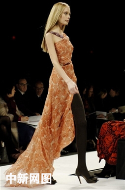2006年2月6日,紐約時(shí)裝周,模特在展示資深設(shè)計(jì)師Carolina Herrera的秋裝,其作品有女人味而不繁瑣。