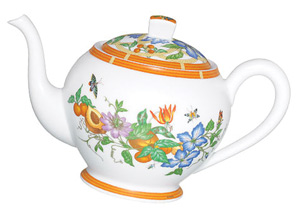 中國工筆畫式的花鳥蟲魚也出現(xiàn)在Hermés茶壺和茶杯上。