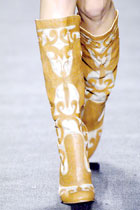 今年設(shè)計師們強調(diào)蝴蝶的高雅、古典和夢幻色彩。根據(jù)配飾流行情報透露,本季蝴蝶配飾和鞋包一定大熱。不妨參考一下梵克雅寶今年春夏Envol珠寶系列,精巧古典的單蝶戒指和三蝶手鐲。而另一個偏愛蝴蝶的設(shè)計師安娜·蘇本季也推出可愛的冰藍色和淺咖啡色蝴蝶貼片長靴和手袋。從中我們可以明白一個道理:本季的蝴蝶要走上流路線,高雅而富有想像力,是公主般的優(yōu)雅蝴蝶。