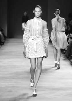 這一季的流行回歸到最單純的白色,但今夏的白色與往年大不相同。相比以往白色服飾給人的純潔印象,今年的白色系列挖掘的是白色性感的另一面:雪紡和蕾絲下面是十足的透明誘惑;鏤空、雕花、綴邊的“拼接”勾勒出女人的完美曲線;關(guān)注細節(jié)的刺繡、鑲嵌帶來的視覺感受,讓人回味無窮的精致性感……