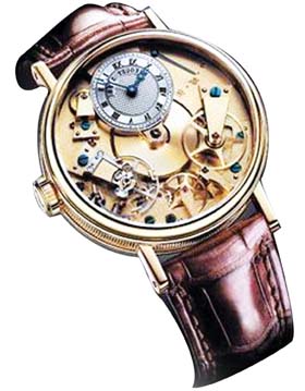 這款精美腕表的革命性設(shè)計在于,橋架、齒輪、擒縱機構(gòu)、發(fā)條盒和零件均一目了然,而通常這些零件都是安裝在底板之下的,表的觀賞性得到巨大地提高。這是一款將超現(xiàn)代理念和傳統(tǒng)完美結(jié)合的表款:一絲不茍的規(guī)范,躍然眼前的擺輪在勻稱的橋架支撐下運轉(zhuǎn)有致,且因精美的裝飾而更加奪目。橋架和底板為噴砂處理,其所采用的修整技術(shù)需要非同一般的技巧,才能使之均衡平整,堅固耐用。這款精品體現(xiàn)了獨特的風(fēng)格和全新的技藝,表明寶璣表在與時俱進的同時,不失其一如既往的純正和優(yōu)雅,絕不會偏離品牌的身份與本質(zhì)。