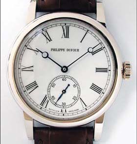 Simplicity的魅力在哪里?打一個比喻:假如把一些頂級品牌在表中的地位比作車中的勞斯萊斯,要知道勞斯萊斯畢竟還有一個商業(yè)化的流水線,而Simplicity完全就要靠Dufour和幾個學(xué)徒的雙手了。Philippe Dufour 在深具幾何美學(xué)的1/2夾板配置下,結(jié)合極盡繁復(fù)的手工制表技藝,每一個橋板都經(jīng)過仔細的倒角打磨,每一個零件都經(jīng)過完美的雕琢。