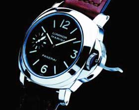 以意大利皇家海軍手表官方供應(yīng)商而聞名的Panerai其最大的特色是尺寸。最小的表款尺寸也有40mm。有許多高大的精英男性就是喜歡它的大尺寸,不過許多中等身材的男士們或者是女性同樣對它充滿著狂熱。Panerai的出現(xiàn)甚至顛覆了鐘表界的定律:不是自廠機芯,不是傳統(tǒng)的瑞士品牌。甚至它佩戴起來的沉重感在一般人看來可能不是那么舒服。但是這一切都抵擋不了表迷對它的熱愛。拋光精鋼表殼及藍寶石水晶表底蓋。黑色表盤附夜光小時標(biāo)示與阿拉伯?dāng)?shù)字,小秒針位于9時位置。藍寶石水晶玻璃,厚度3.5mm,抗反光處理,防水可達300米,刻有PANERAI標(biāo)志,皮革表帶及表扣。