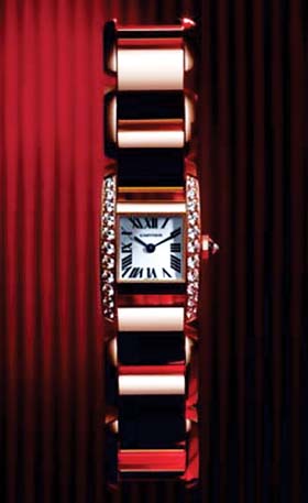 這款腕表出身顯赫的Tank世家,承襲了一脈相傳的貴族血統(tǒng),無疑是卡地亞家族的又一經(jīng)典巨作。它擁有長方形的外框與優(yōu)美的弧線底座,造型小巧玲瓏,流露出明朗自主的女性美。Tankissime處處散發(fā)女性特有的魅力,實心的弧形鏈節(jié)以黃金、玫瑰金、白金或美鉆精制而成。 (來源:北京現(xiàn)代商報;作者:楊帆)