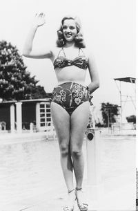點(diǎn)評(píng):作為第一個(gè)“吃螃蟹的人”,舞女米查爾·伯娜蒂妮就這樣幸運(yùn)地在比基尼的歷史上留下了重要的一筆。雖然用我們今天的眼光衡量,她的身材可能因?yàn)檫^于豐滿而不夠“標(biāo)準(zhǔn)”,但這又有什么呢?