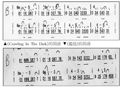 而就在記者采訪結(jié)束后,鑒于斌迷們一再要求,方圓在她的博客中又貼出了兩首歌曲的“和弦進(jìn)行”部分樂(lè)譜作為回應(yīng),并做出了專業(yè)的解釋。不過(guò)記者也意外發(fā)現(xiàn),這次在方圓的博客中又明確指出,胡彥斌的歌曲中,除了《皇帝》與Seven的《熱情》極其相似外,還有《情不自禁》與艾薇兒《WhoKnows》、《你這么晚了還沒(méi)睡》與Usher《Burn》、《尷尬》和《CrawlingInTheDark》都非常相似,并毫不客氣地在博客中貼出了這幾首歌的和弦樂(lè)譜和簡(jiǎn)譜,以便大家考證。(記者吳冬妮)
