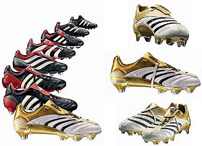 如果說紀(jì)念版的球鞋只是讓你過過心癮,那么“落場(chǎng)版”球鞋就完全實(shí)現(xiàn)你過腳癮的心愿了。所謂“落場(chǎng)版”,即是球星們下場(chǎng)踢球時(shí)穿的球鞋版本。Adidas便給一眾大牌明星定制了特別版球鞋,如西班牙的隊(duì)長(zhǎng)勞爾、英格蘭的貝克漢姆、法國(guó)的維埃拉、阿根廷的里克爾梅、日本的中田英壽和德國(guó)的巴拉克,他們都將穿著該品牌最新的PredatorAbsolute踏上球場(chǎng)。