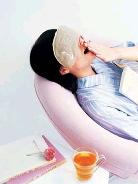 2、用棉布包起陳茶茶葉敷在眼睛上,然后躺下休息。10-15分鐘后,用清水洗凈,涂上眼霜。