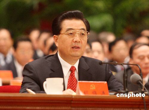 十月二十一日,中國共產(chǎn)黨第十七次全國代表大會(huì)在北京人民大會(huì)堂閉幕,中共中央總書記胡錦濤發(fā)表講話。中新社發(fā) 毛建軍 攝