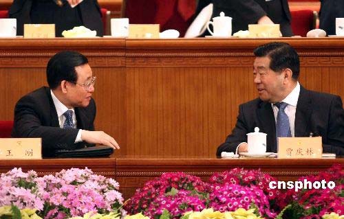 十一屆一次會議主席團(tuán)會議主持人賈慶林、主席團(tuán)常務(wù)主席王剛出席會議。